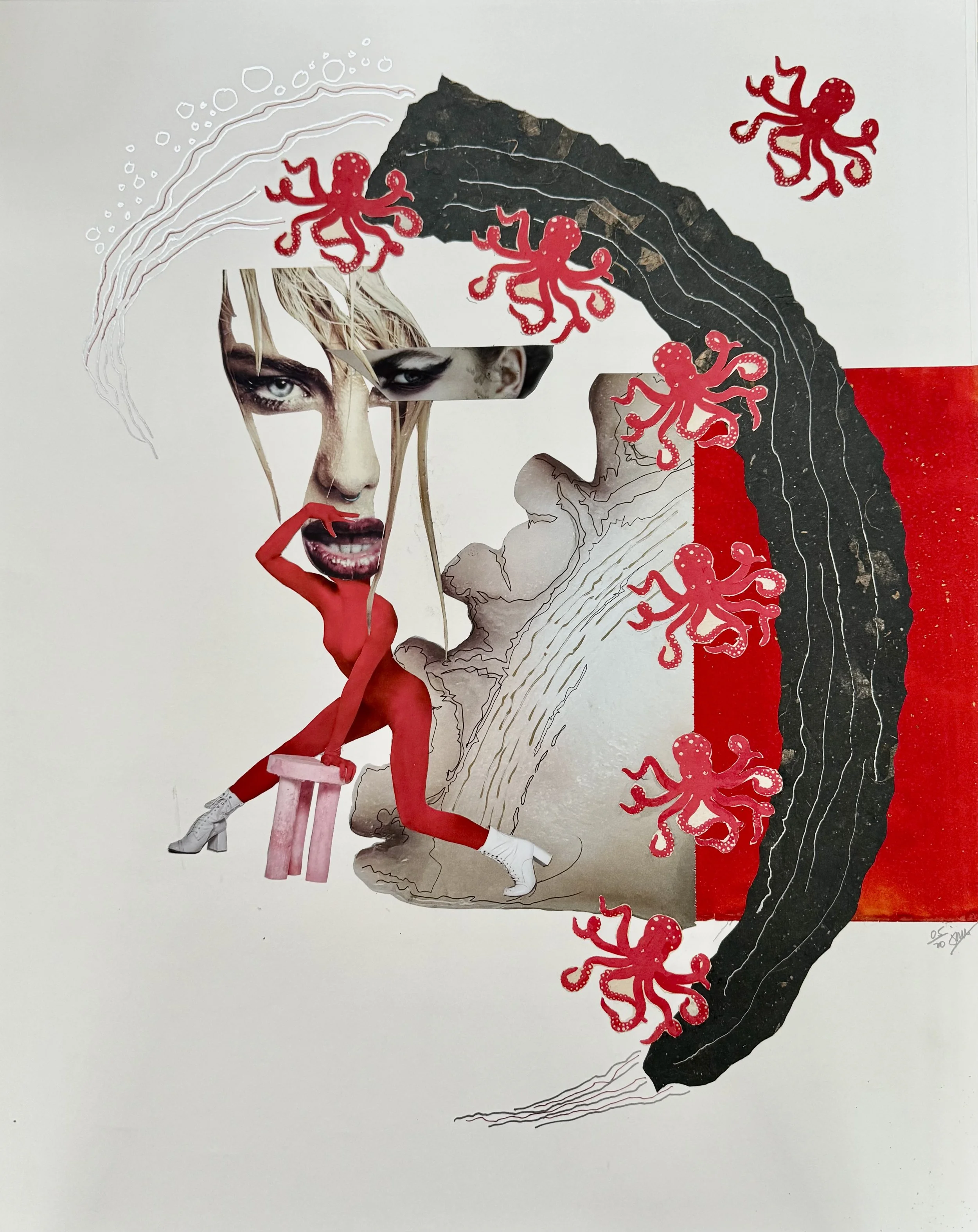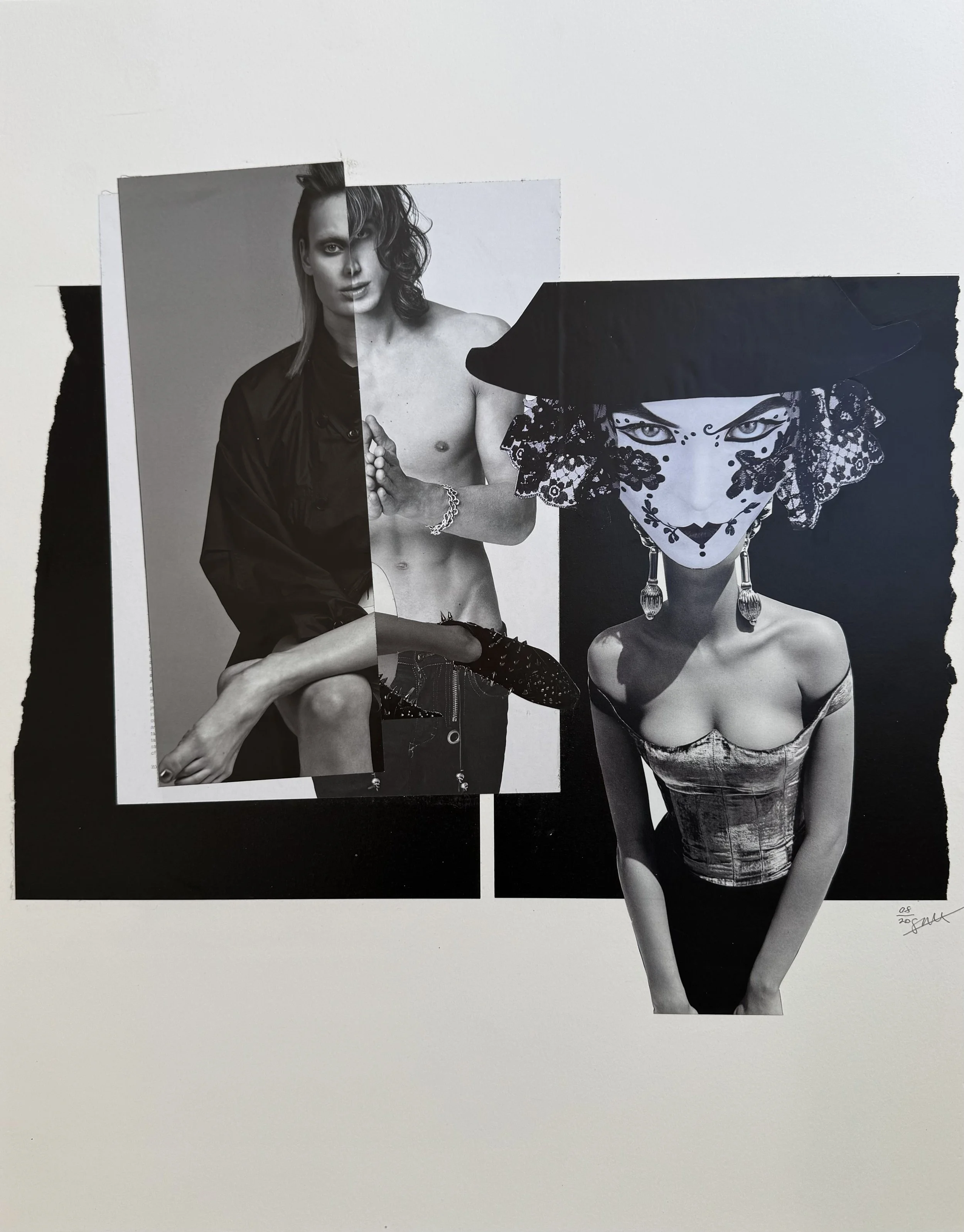 Magazine cuttings on 1950s fashion magazine advertisement on Bristol Board. 19”x 24” (2024)