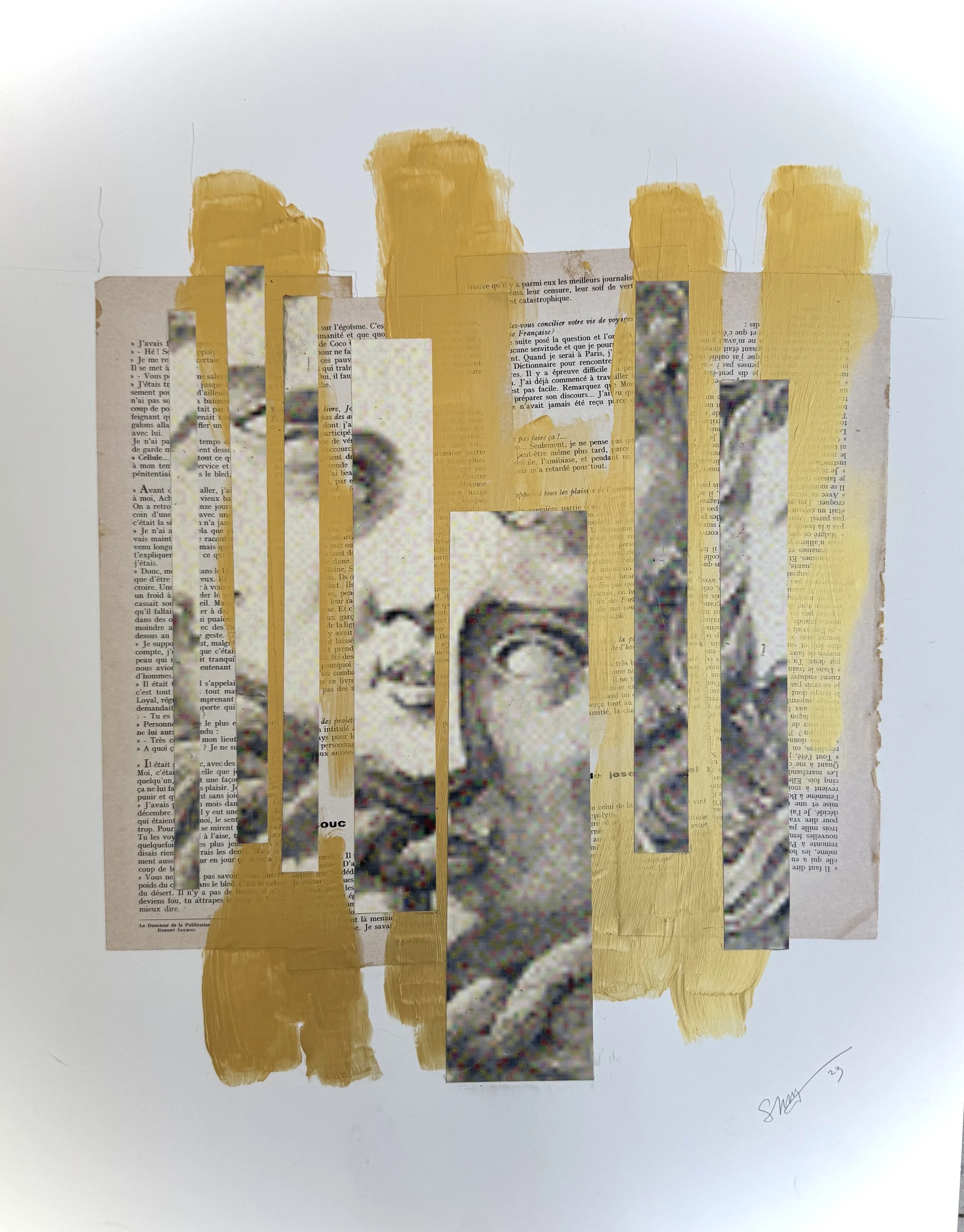 Magazine cutting, handmade papers, ink on Bristol Board. 19”x 24” (2023)